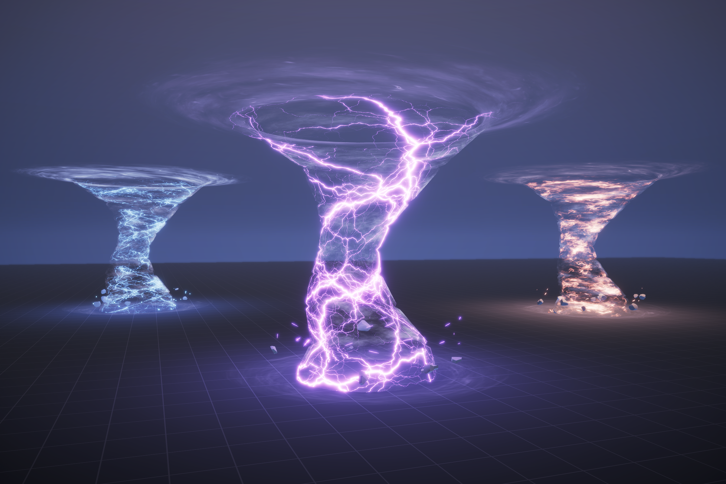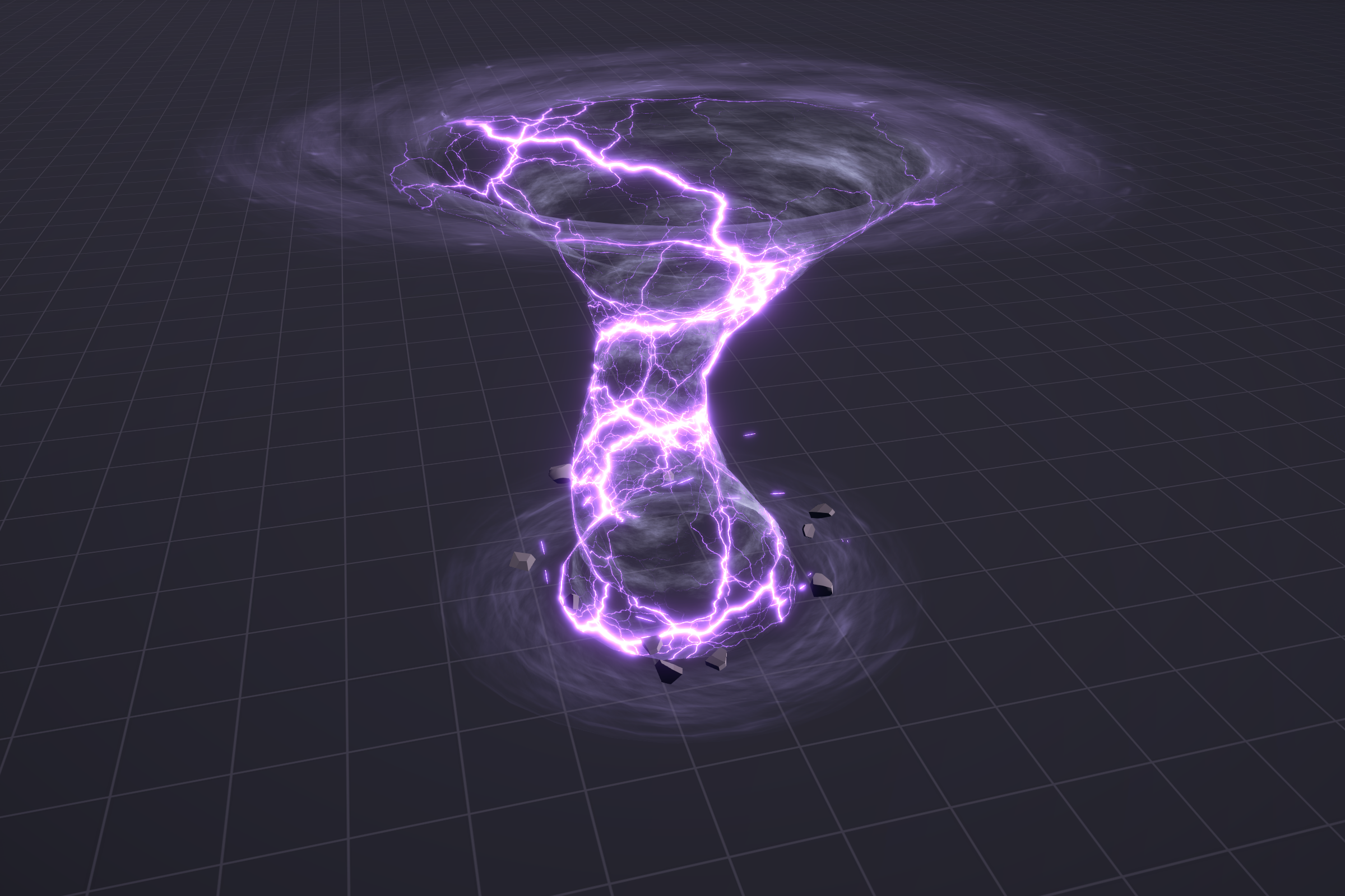 The package includes 7 ready-made tornado variations, each built with unique textures and offering extensive customization options to match a wide range of art styles and game settings. The effect features dynamic Blend Shape animation for extra motion and realism. Built entirely with Shader Graph and Particle System, this VFX is compatible with all Unity render pipelines (URP, HDRP, and Built-in).
